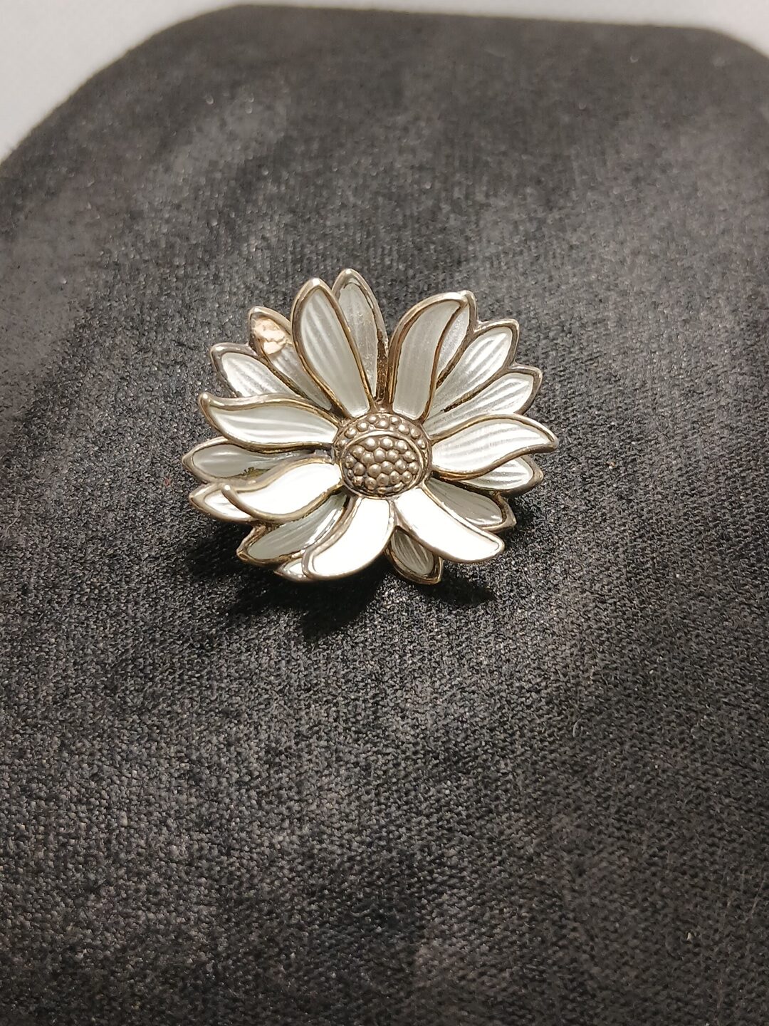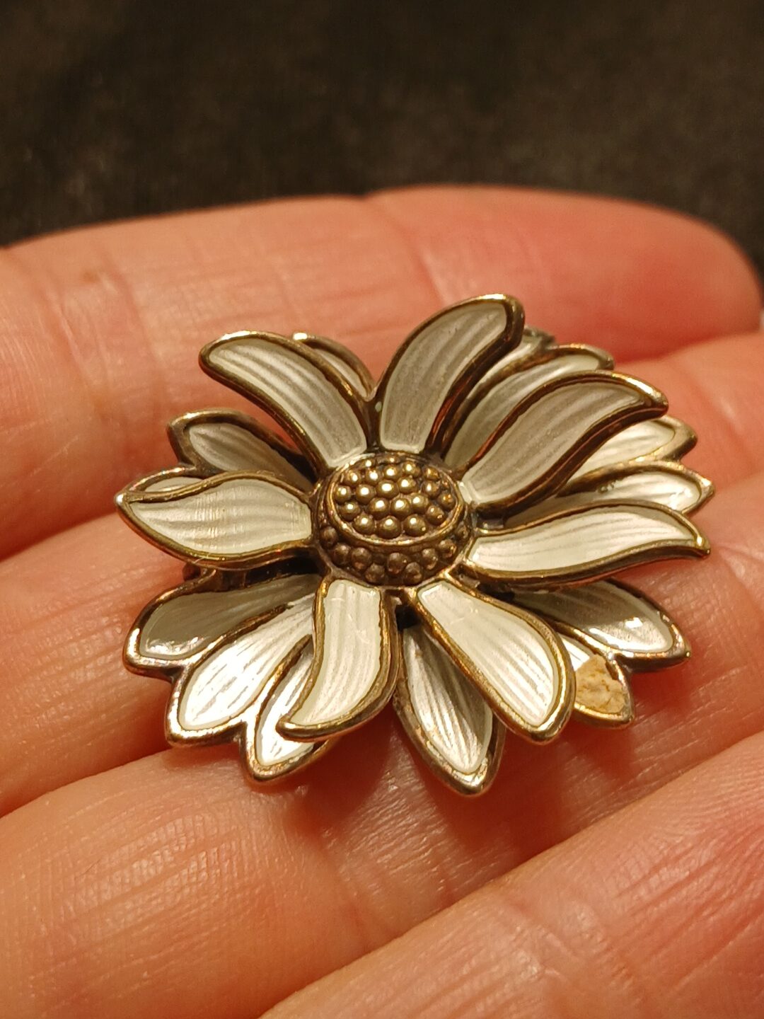 David-Andersen sølvbrosje 925s – prestekrage med hvit emalje