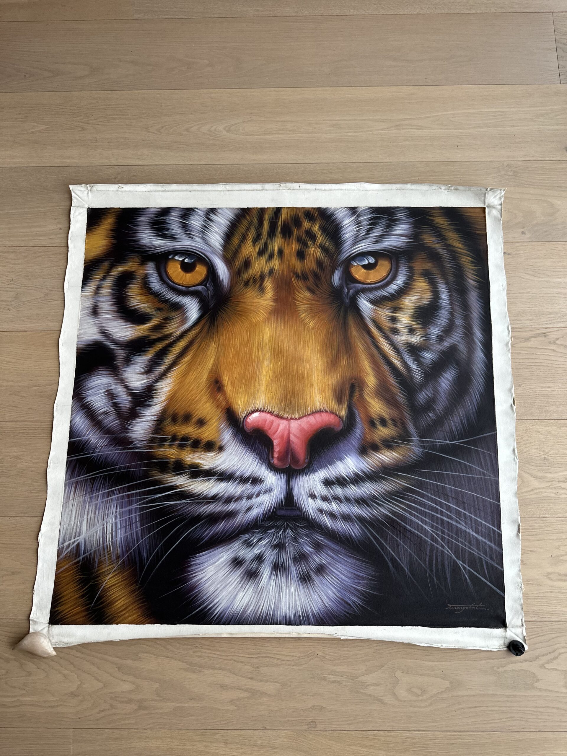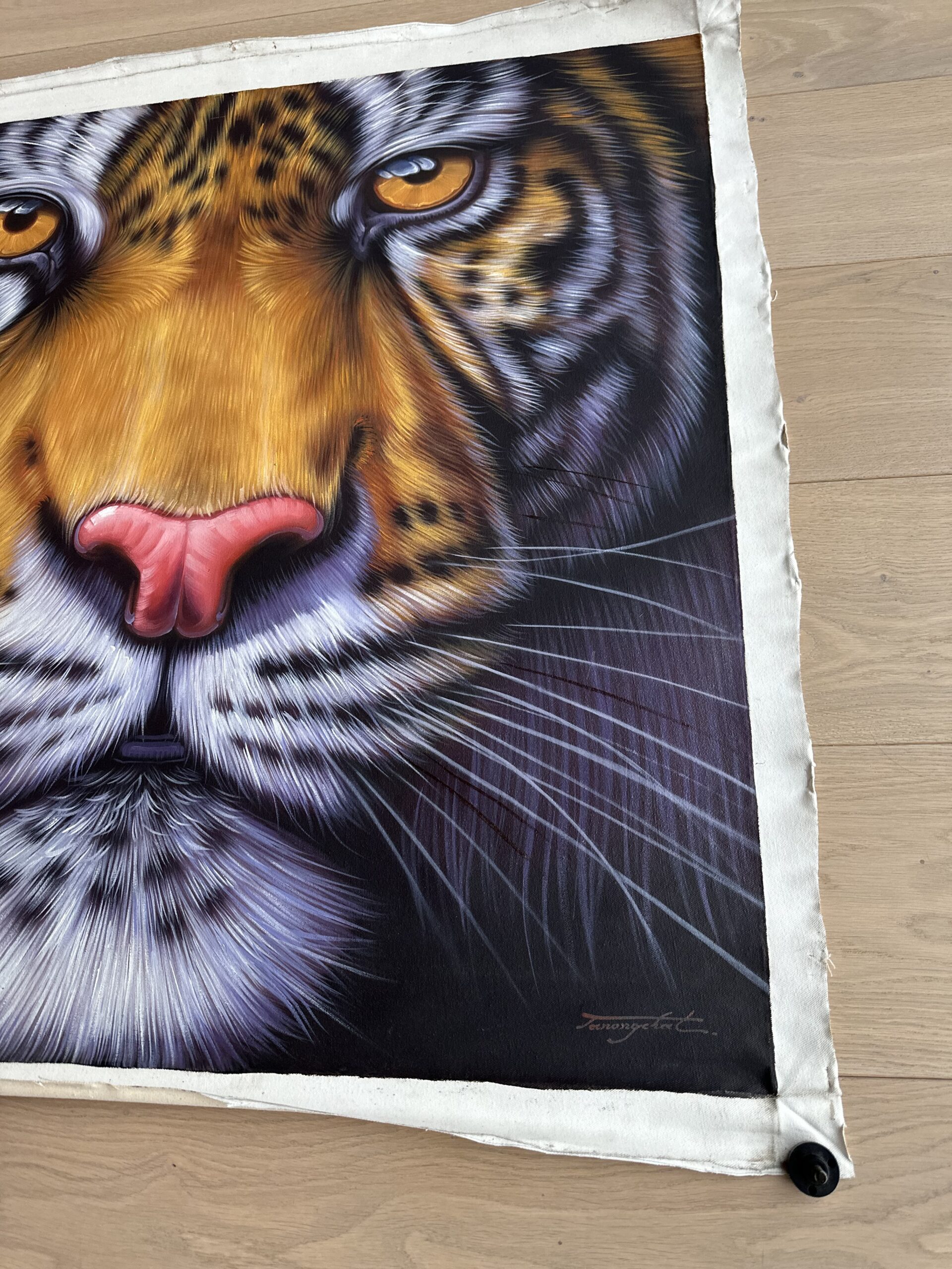Utrolig vakkert oljemaleri av en majestetisk tiger som ble malt for hånd på Phi Phi.