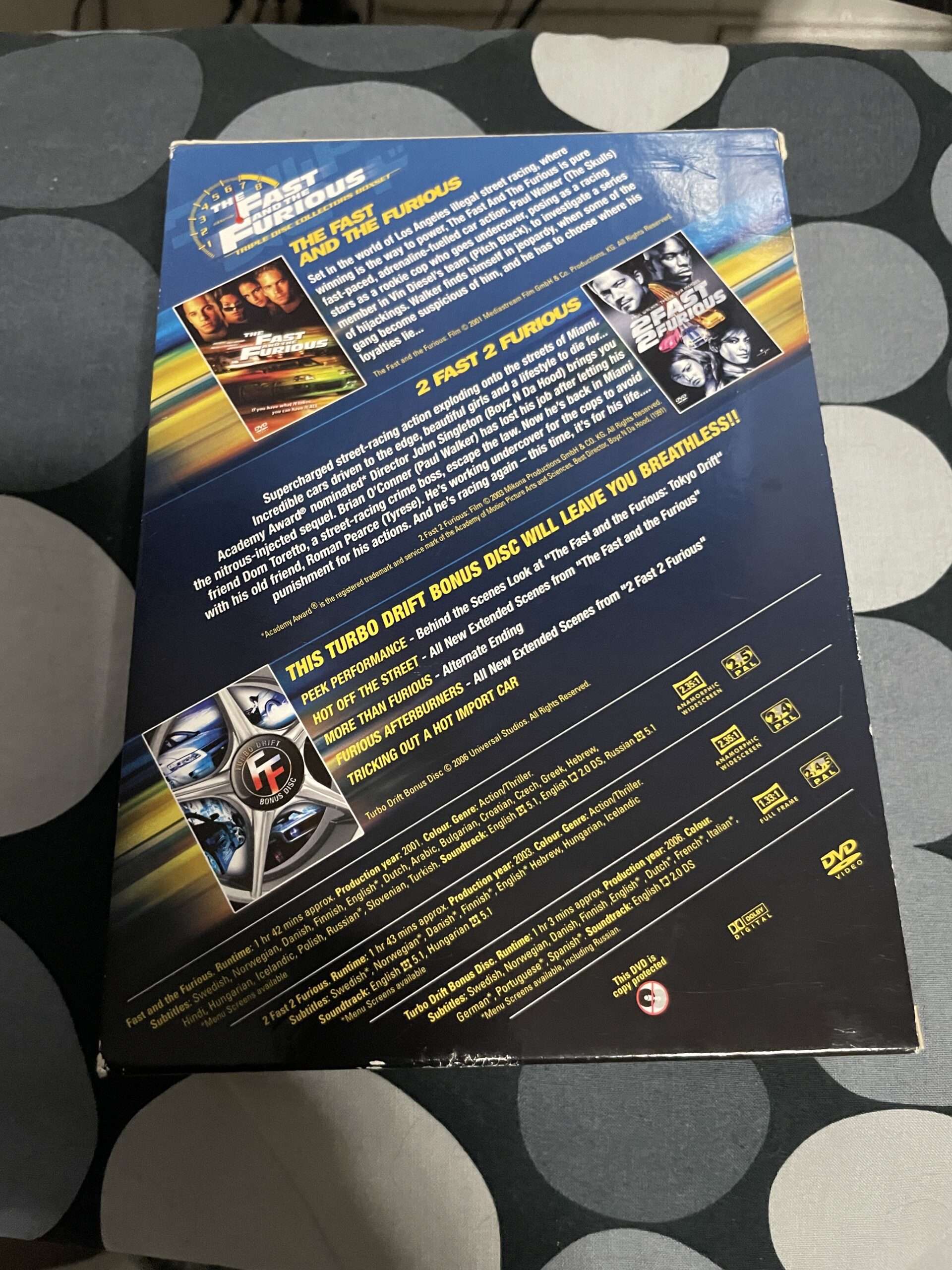 Fast and the furious, the triple disc collectors boxset – inneholder: Fast and the furious, the – 2 Fast 2 Furious – FFR turbo drift bonus disc – alle i egne cover med et boxset cover utenpå disse