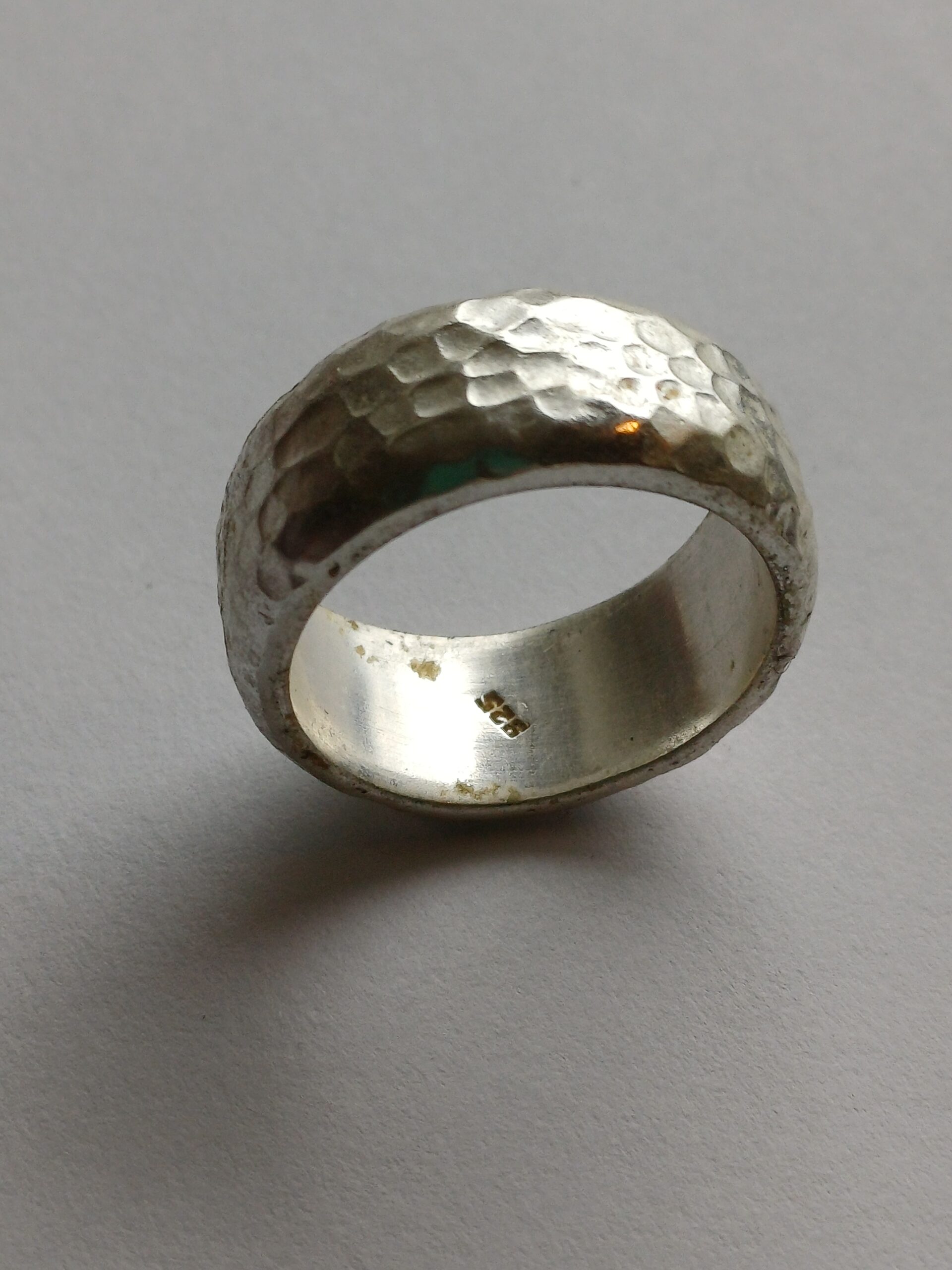 Størrelse 14,og 11 gram .Bredde 11mm. Håndlaget ring.