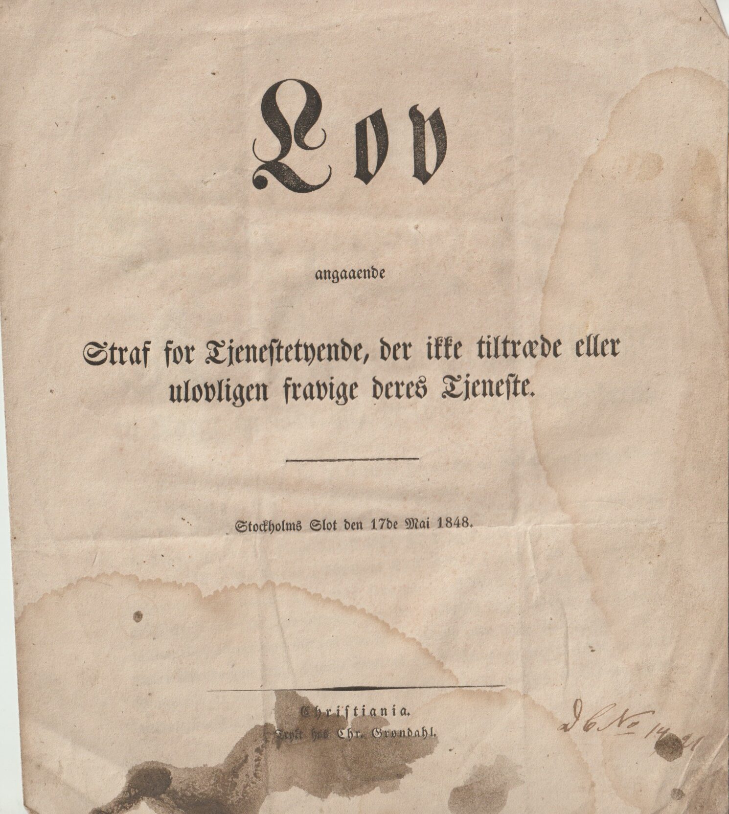 ;2 stk Lover fra Kong OSCAR 1848. Oscar var konge i Norge og Sverige 1844 – 1859. + porto