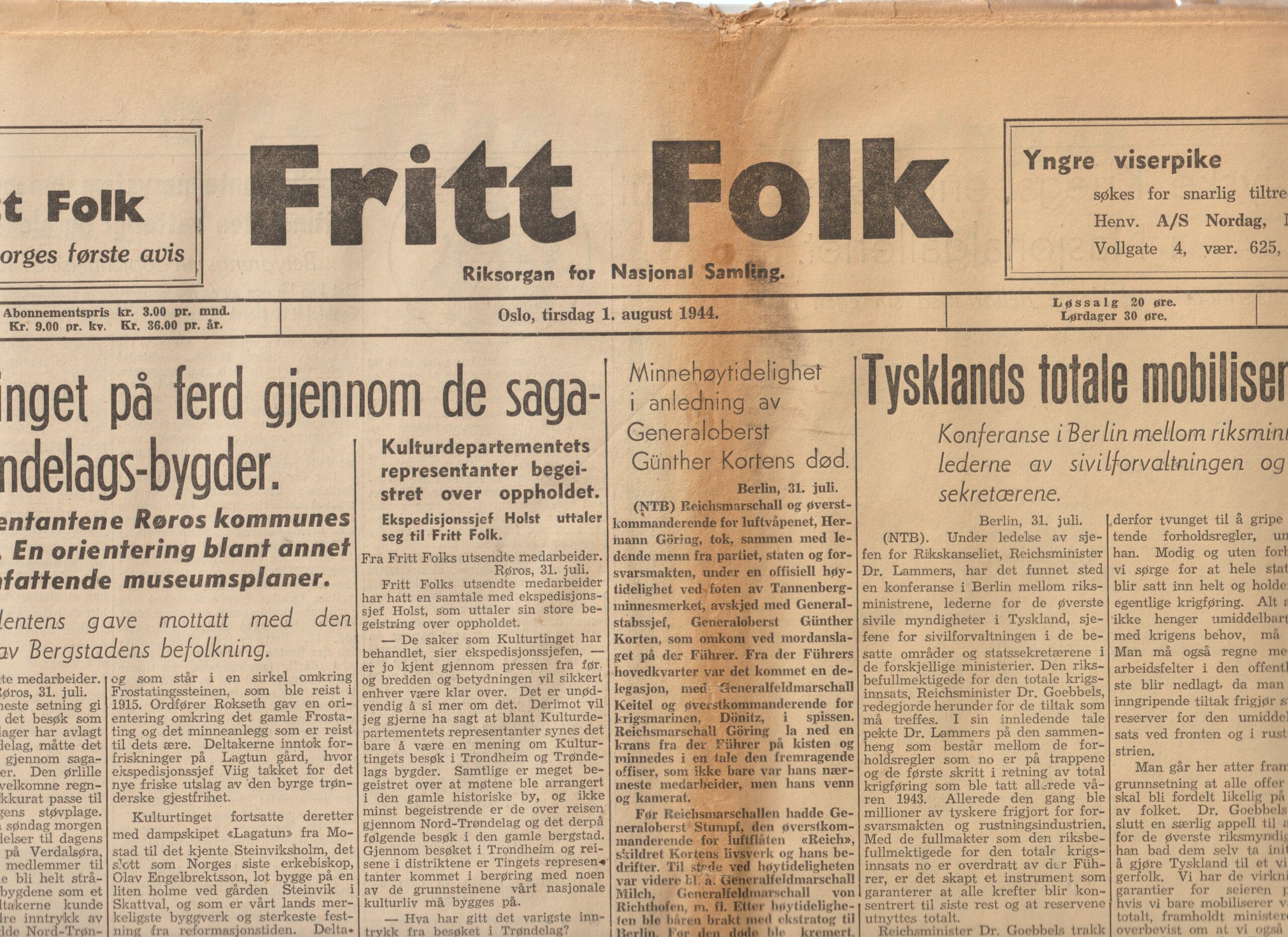 Qusling sin avis FRITT FOLK 1 august 1944. + porto